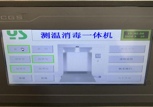 初次使用時開機即按出廠設置正常進行測溫消毒,如需更改相關設置,需在機器正面右側觸摸操控屏幕上進行更改。例如:機器頂部照明開關、廠家維修電話熱線等。